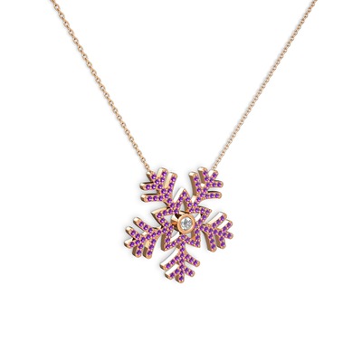 Beyaz zirkon ve ametist 14 ayar rose altın kolye (40 cm gümüş rolo zincir)