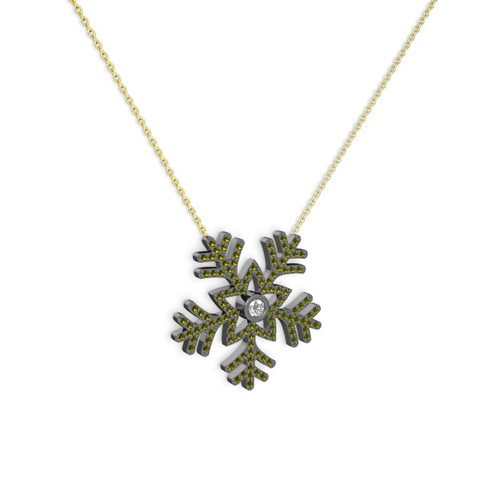 Beyaz zirkon ve peridot 925 ayar siyah rodyum kaplama gümüş kolye (40 cm altın rolo zincir)