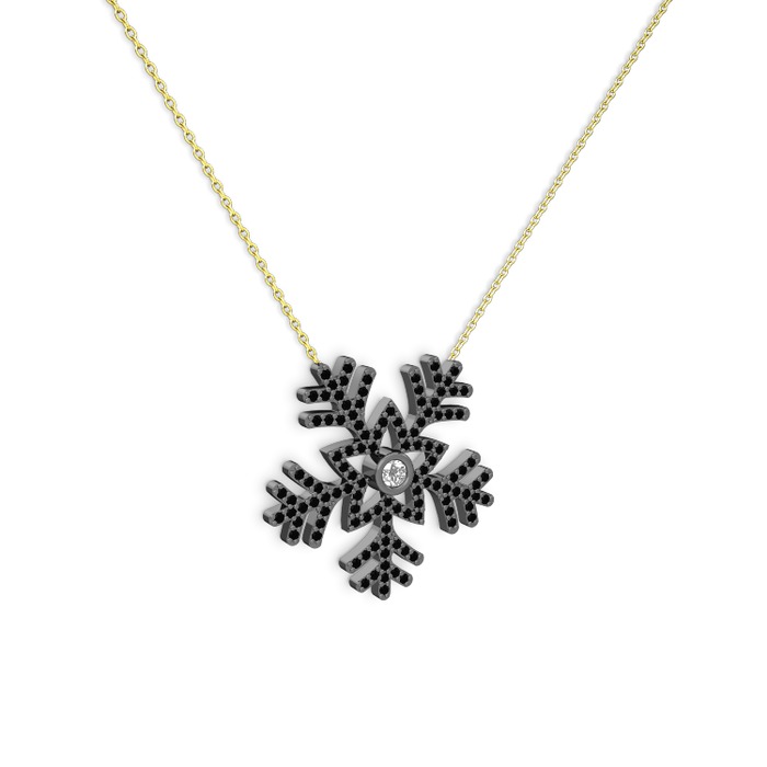 Beyaz zirkon ve siyah zirkon 925 ayar siyah rodyum kaplama gümüş kolye (40 cm altın rolo zincir)