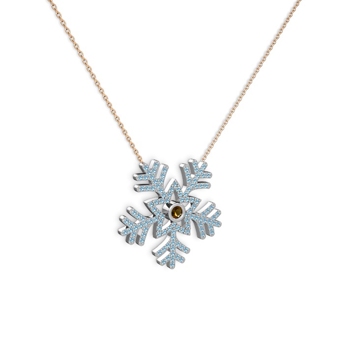 Dumanlı kuvars ve akuamarin 18 ayar beyaz altın kolye (40 cm rose altın rolo zincir)