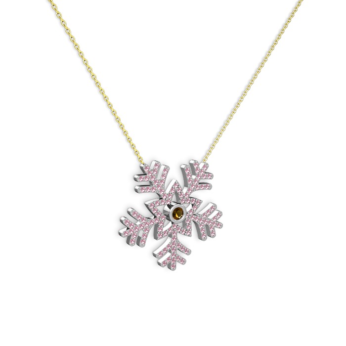 Dumanlı kuvars ve pembe kuvars 18 ayar beyaz altın kolye (40 cm altın rolo zincir)