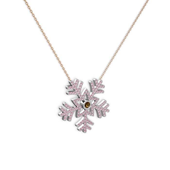 Dumanlı kuvars ve pembe kuvars 925 ayar gümüş kolye (40 cm gümüş rolo zincir)