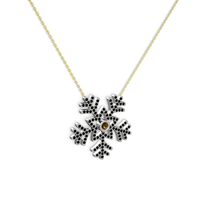 Dumanlı kuvars ve siyah zirkon 14 ayar beyaz altın kolye (40 cm gümüş rolo zincir)