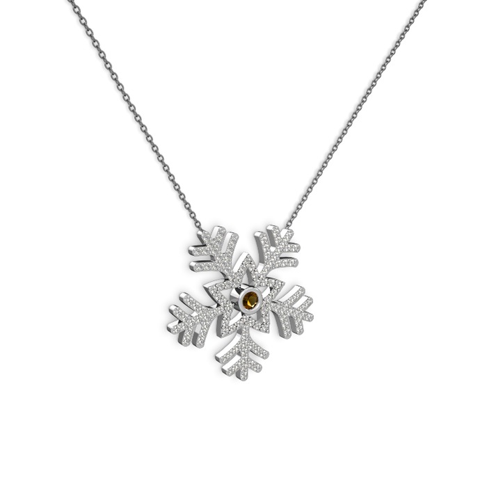 Dumanlı kuvars ve swarovski 14 ayar beyaz altın kolye (40 cm gümüş rolo zincir)