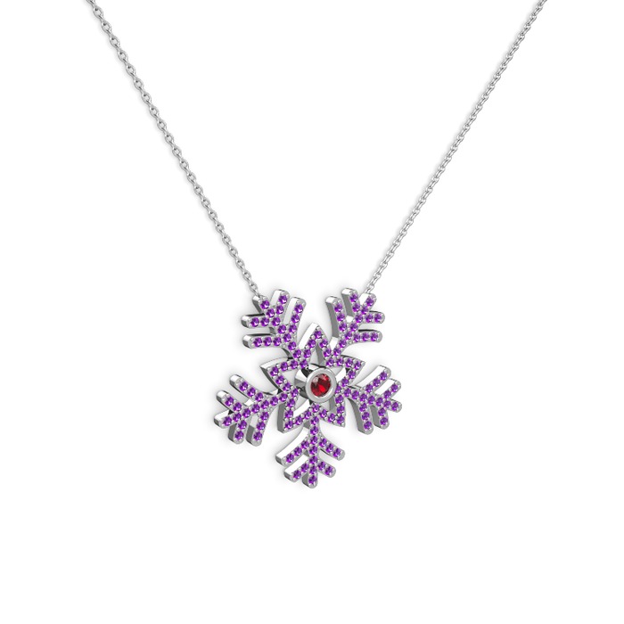 Garnet ve ametist 925 ayar gümüş kolye (40 cm beyaz altın rolo zincir)