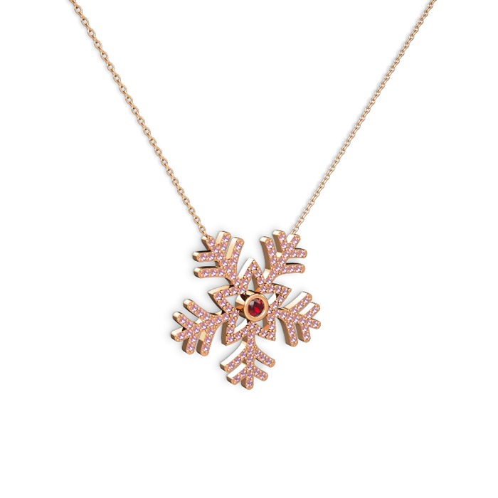 Garnet ve pembe kuvars 925 ayar rose altın kaplama gümüş kolye (40 cm rose altın rolo zincir)