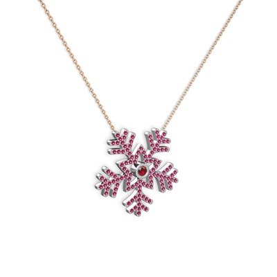 Garnet ve rodolit garnet 8 ayar beyaz altın kolye (40 cm rose altın rolo zincir)