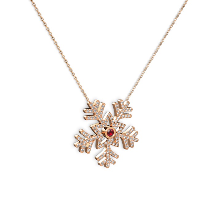 Garnet ve swarovski 18 ayar rose altın kolye (40 cm rose altın rolo zincir)