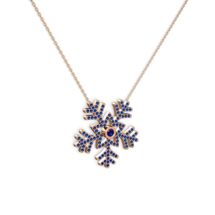 Lab safir 18 ayar rose altın kolye (40 cm rose altın rolo zincir)