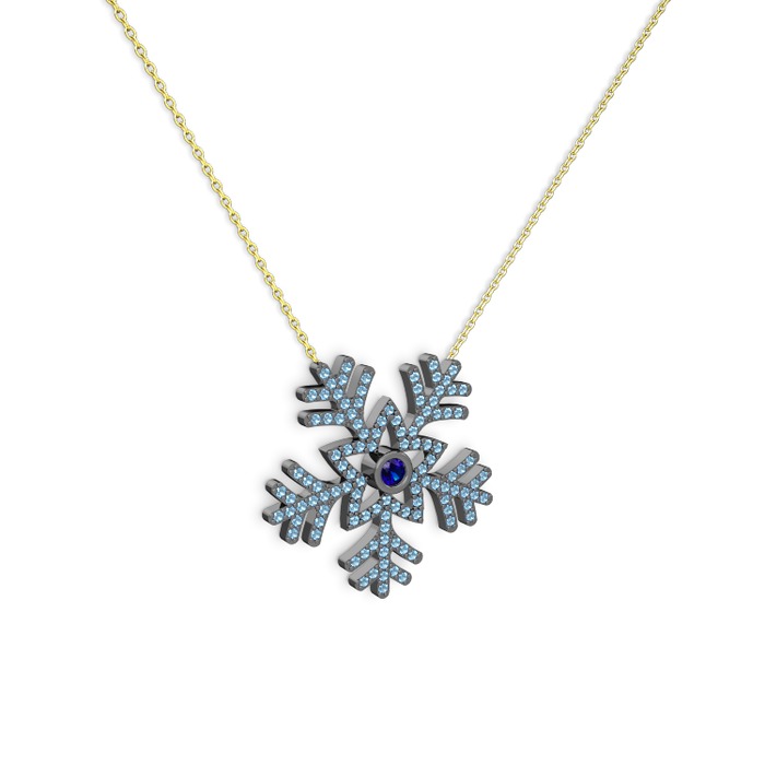 Lab safir ve akuamarin 925 ayar siyah rodyum kaplama gümüş kolye (40 cm altın rolo zincir)