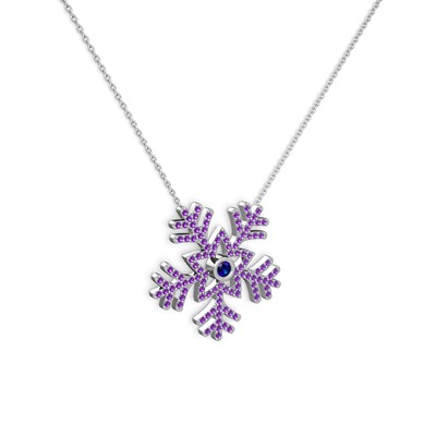 Lab safir ve ametist 8 ayar beyaz altın kolye (40 cm beyaz altın rolo zincir)