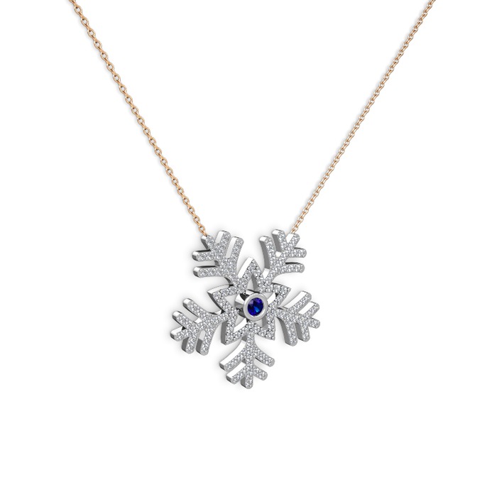 Lab safir ve beyaz zirkon 18 ayar beyaz altın kolye (40 cm rose altın rolo zincir)