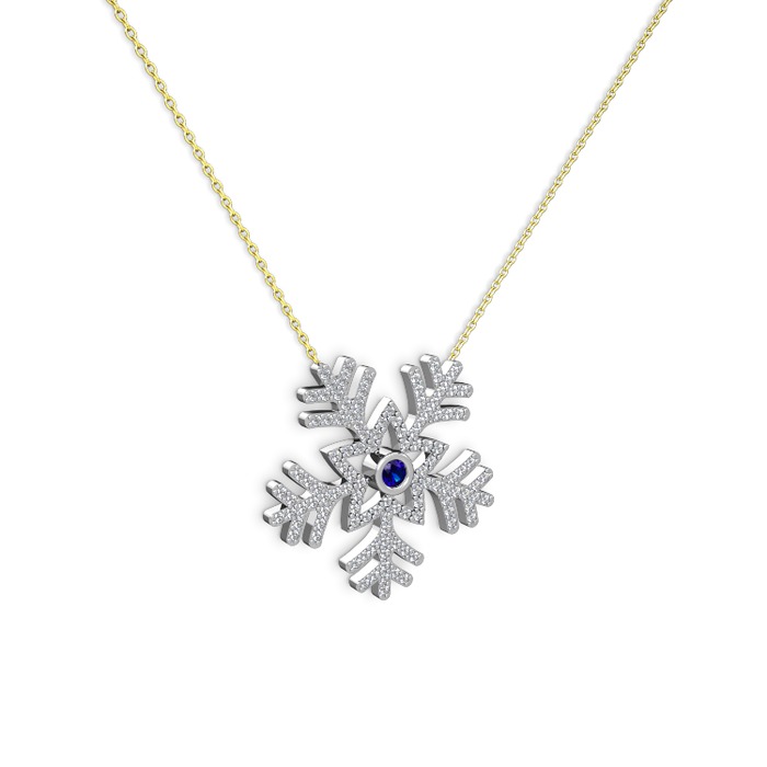 Lab safir ve beyaz zirkon 925 ayar gümüş kolye (40 cm gümüş rolo zincir)