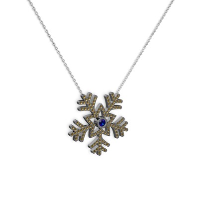 Lab safir ve dumanlı kuvars 925 ayar siyah rodyum kaplama gümüş kolye (40 cm beyaz altın rolo zincir)