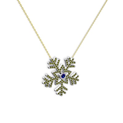 Lab safir ve peridot 8 ayar beyaz altın kolye (40 cm altın rolo zincir)