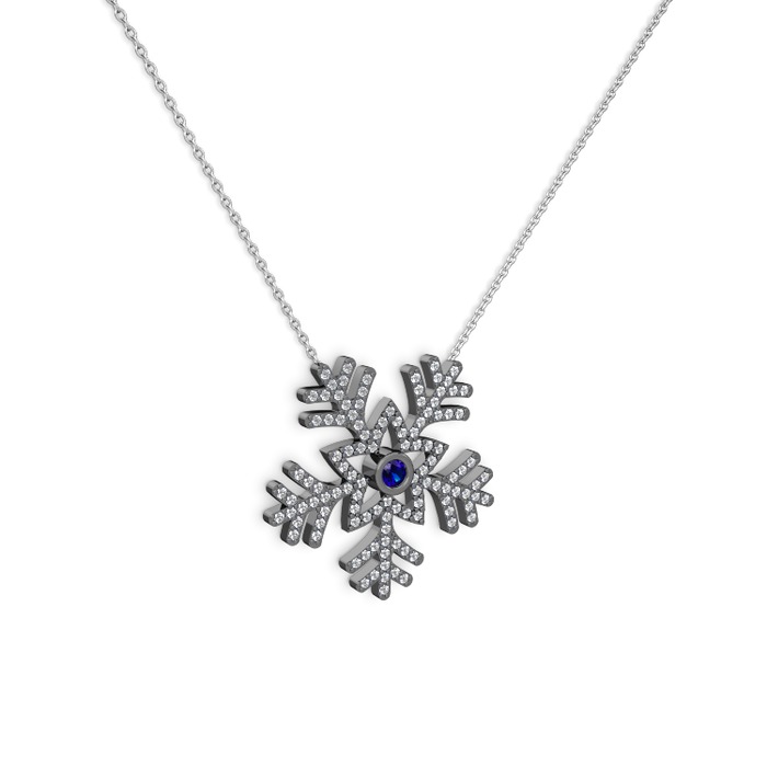 Lab safir ve pırlanta 925 ayar siyah rodyum kaplama gümüş kolye (1.012 karat, 40 cm beyaz altın rolo zincir)