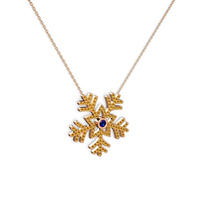 Lab safir ve sitrin 18 ayar rose altın kolye (40 cm gümüş rolo zincir)