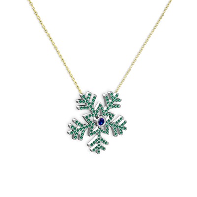 Lab safir ve yeşil kuvars 8 ayar beyaz altın kolye (40 cm altın rolo zincir)