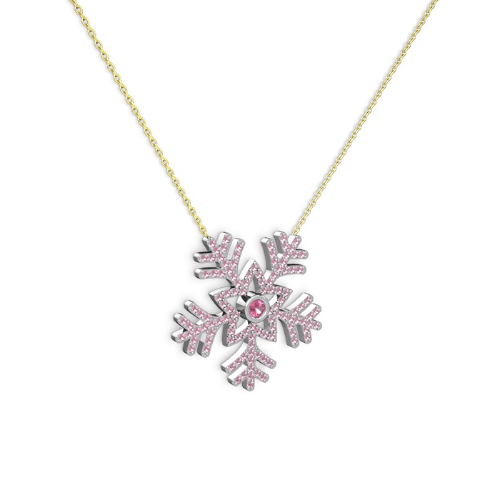 Pembe kuvars 8 ayar beyaz altın kolye (40 cm altın rolo zincir)