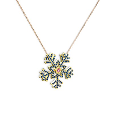Pembe kuvars ve lab safir 18 ayar altın kolye (40 cm gümüş rolo zincir)