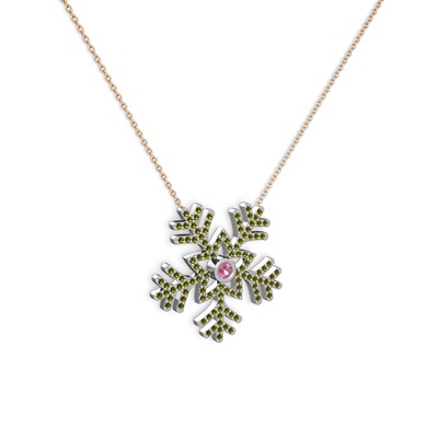 Pembe kuvars ve peridot 925 ayar gümüş kolye (40 cm gümüş rolo zincir)