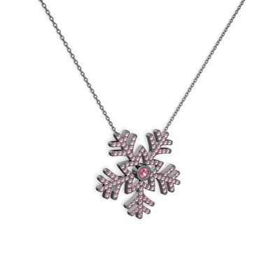 Pembe kuvars 925 ayar siyah rodyum kaplama gümüş kolye (40 cm gümüş rolo zincir)