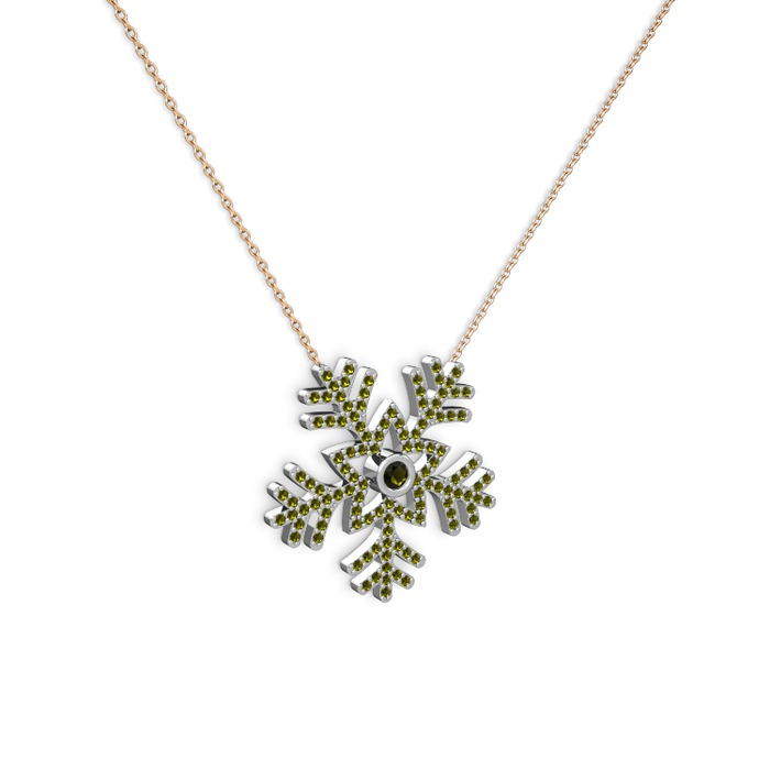Peridot 18 ayar beyaz altın kolye (40 cm rose altın rolo zincir)