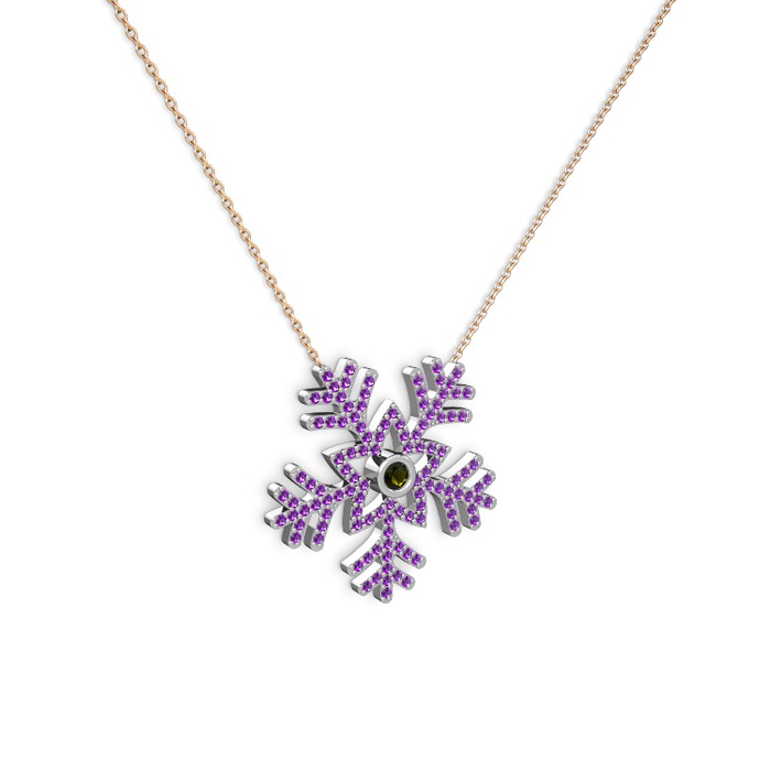 Peridot ve ametist 14 ayar beyaz altın kolye (40 cm rose altın rolo zincir)