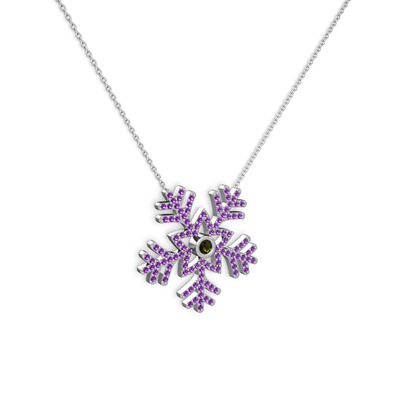 Peridot ve ametist 925 ayar gümüş kolye (40 cm beyaz altın rolo zincir)