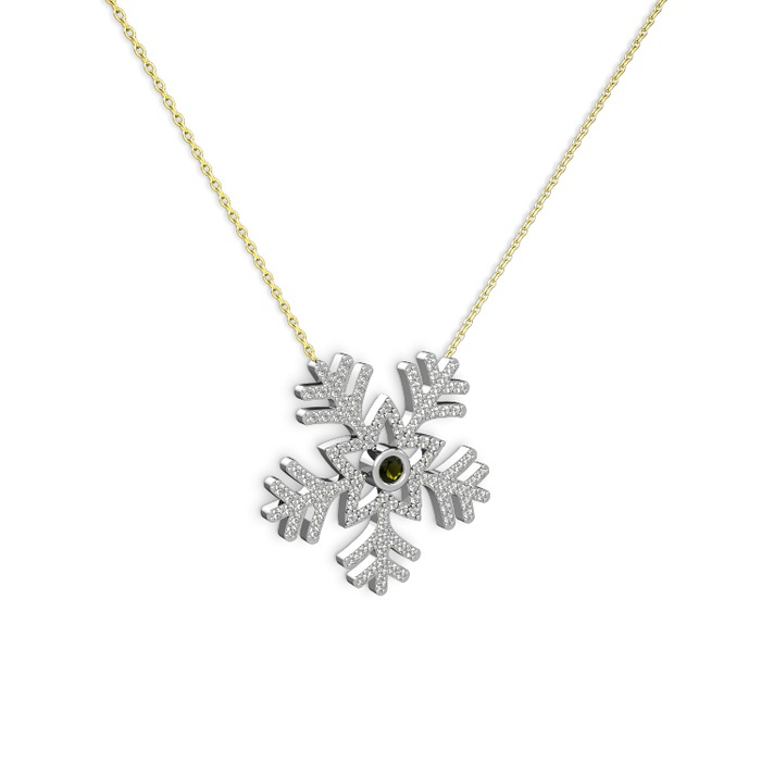 Peridot ve beyaz zirkon 8 ayar beyaz altın kolye (40 cm gümüş rolo zincir)