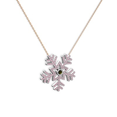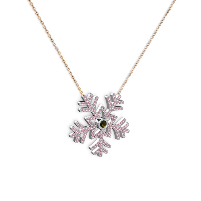 Peridot ve pembe kuvars 925 ayar gümüş kolye (40 cm gümüş rolo zincir)