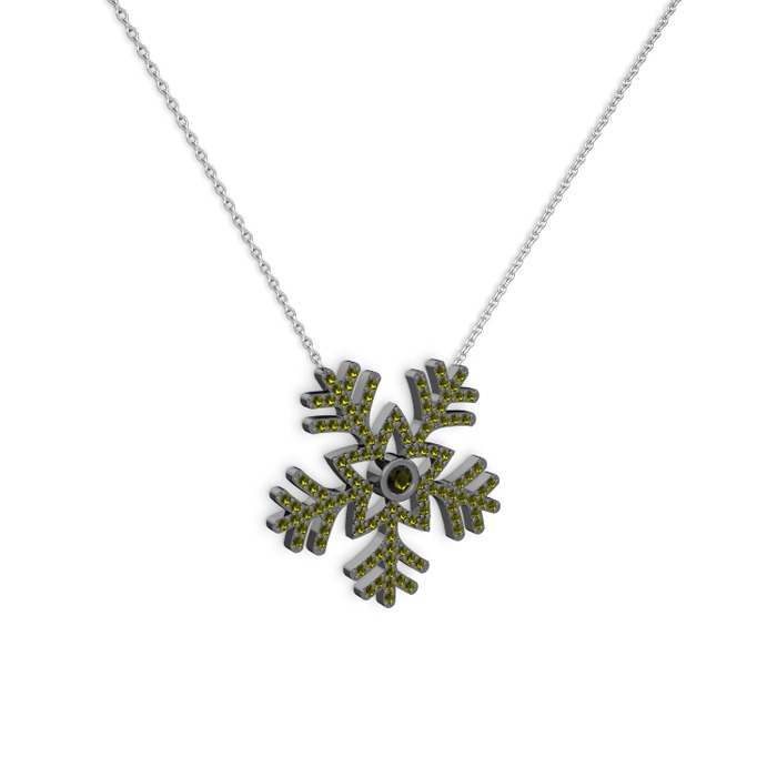 Peridot 925 ayar siyah rodyum kaplama gümüş kolye (40 cm beyaz altın rolo zincir)