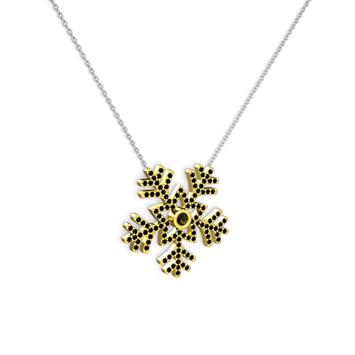 Peridot ve siyah zirkon 14 ayar altın kolye (40 cm beyaz altın rolo zincir)