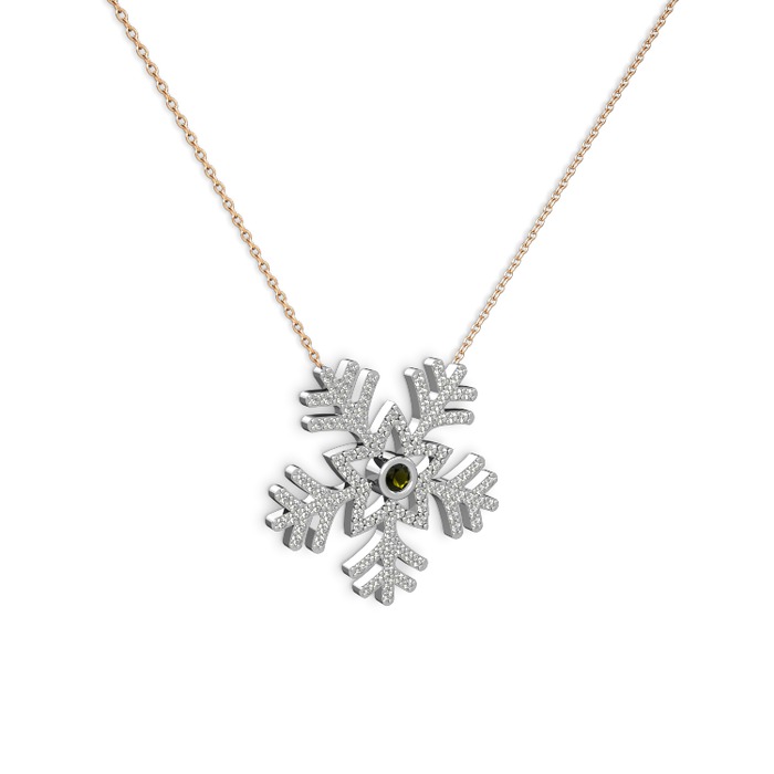 Peridot ve swarovski 14 ayar beyaz altın kolye (40 cm rose altın rolo zincir)