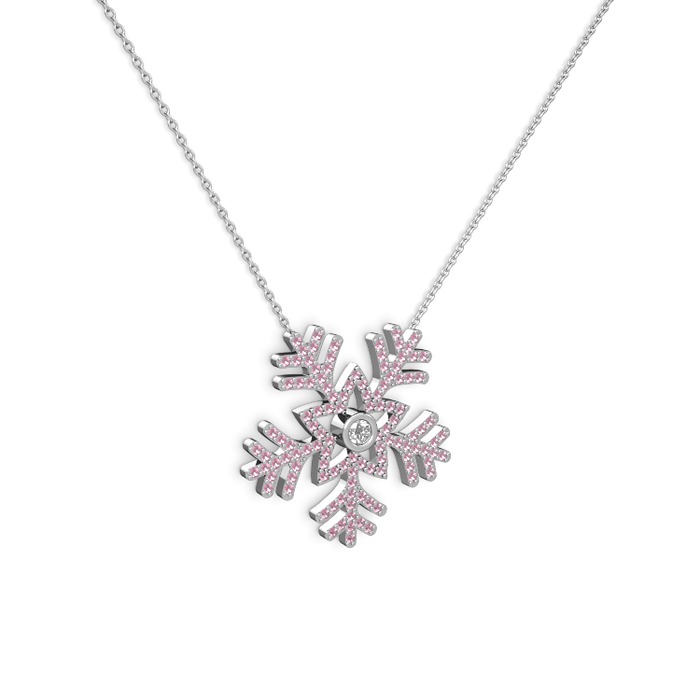 Pırlanta ve pembe kuvars 925 ayar gümüş kolye (0.11 karat, 40 cm beyaz altın rolo zincir)
