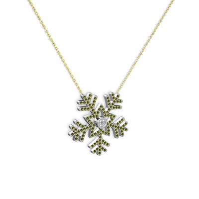 Pırlanta ve peridot 8 ayar beyaz altın kolye (0.11 karat, 40 cm altın rolo zincir)