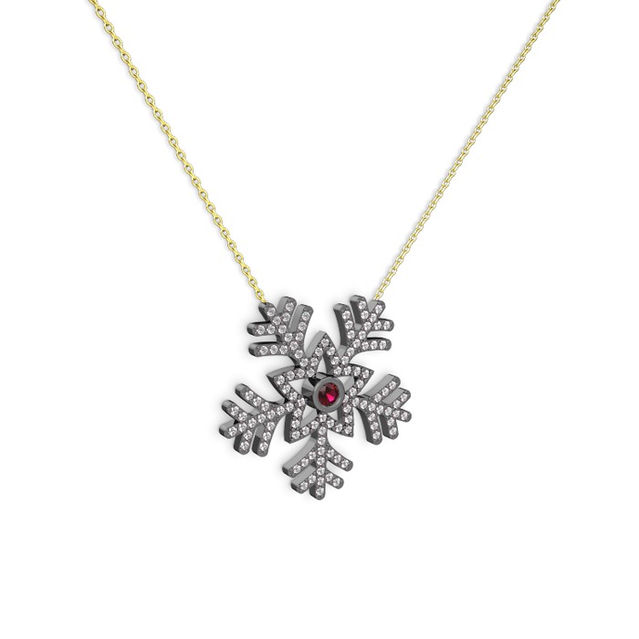 Rodolit garnet ve beyaz zirkon 925 ayar siyah rodyum kaplama gümüş kolye (40 cm gümüş rolo zincir)