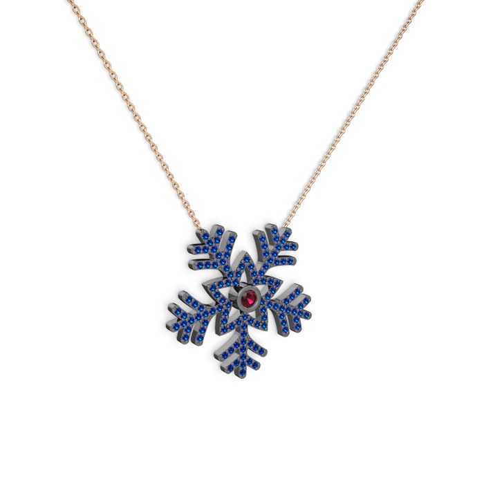 Rodolit garnet ve lab safir 925 ayar siyah rodyum kaplama gümüş kolye (40 cm rose altın rolo zincir)