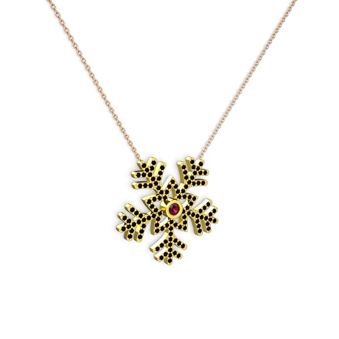 Rodolit garnet ve siyah zirkon 14 ayar altın kolye (40 cm rose altın rolo zincir)