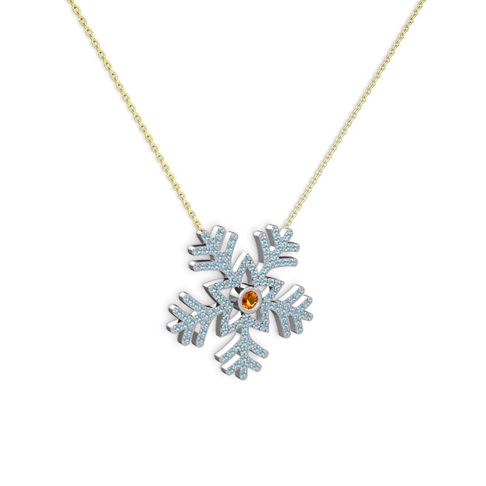 Sitrin ve akuamarin 14 ayar beyaz altın kolye (40 cm altın rolo zincir)