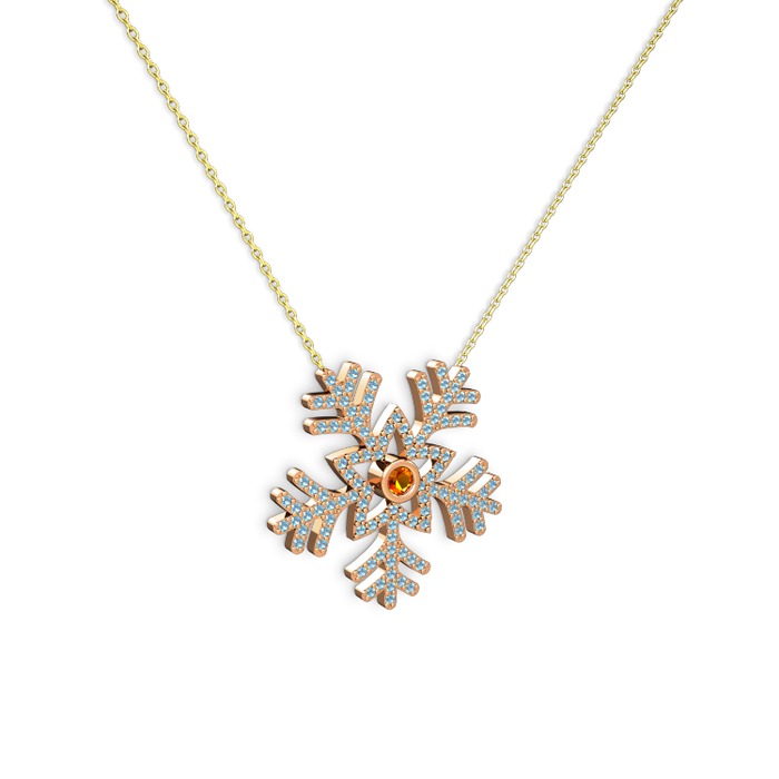 Sitrin ve akuamarin 18 ayar rose altın kolye (40 cm altın rolo zincir)
