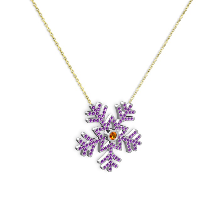 Sitrin ve ametist 925 ayar gümüş kolye (40 cm gümüş rolo zincir)