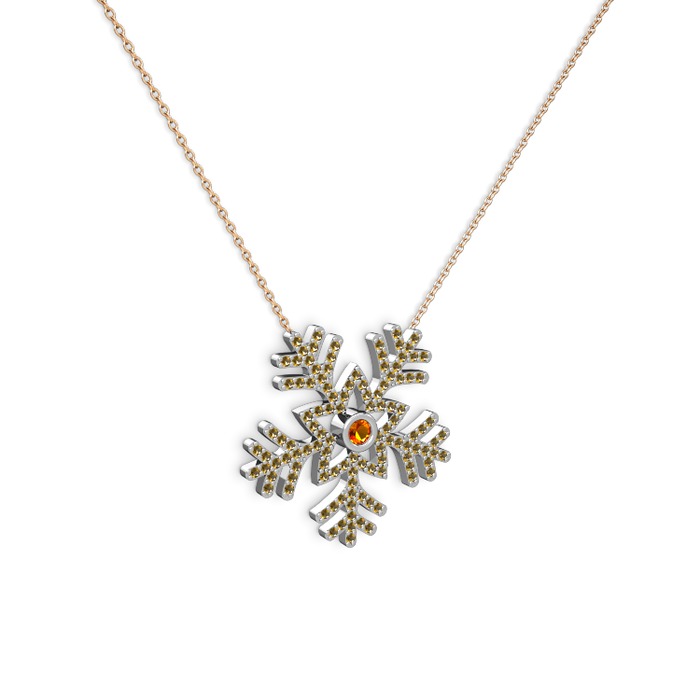 Sitrin ve dumanlı kuvars 925 ayar gümüş kolye (40 cm rose altın rolo zincir)