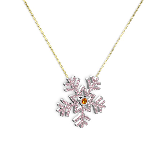 Sitrin ve pembe kuvars 8 ayar beyaz altın kolye (40 cm altın rolo zincir)