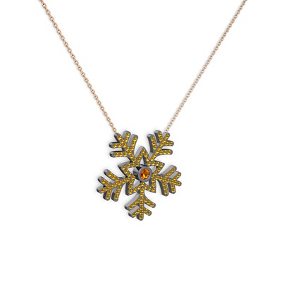 Sitrin 925 ayar siyah rodyum kaplama gümüş kolye (40 cm rose altın rolo zincir)