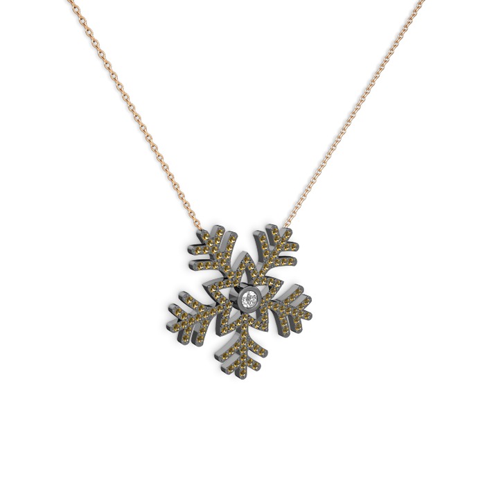 Swarovski ve dumanlı kuvars 925 ayar siyah rodyum kaplama gümüş kolye (40 cm rose altın rolo zincir)