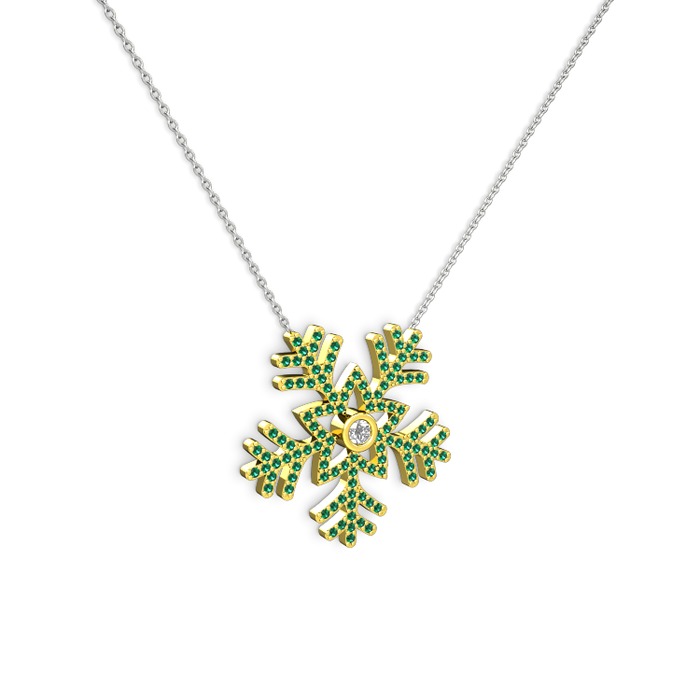 Swarovski ve yeşil kuvars 18 ayar altın kolye (40 cm gümüş rolo zincir)