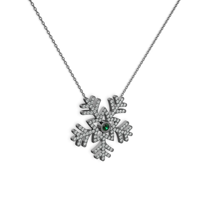 Yeşil kuvars ve beyaz zirkon 925 ayar siyah rodyum kaplama gümüş kolye (40 cm gümüş rolo zincir)