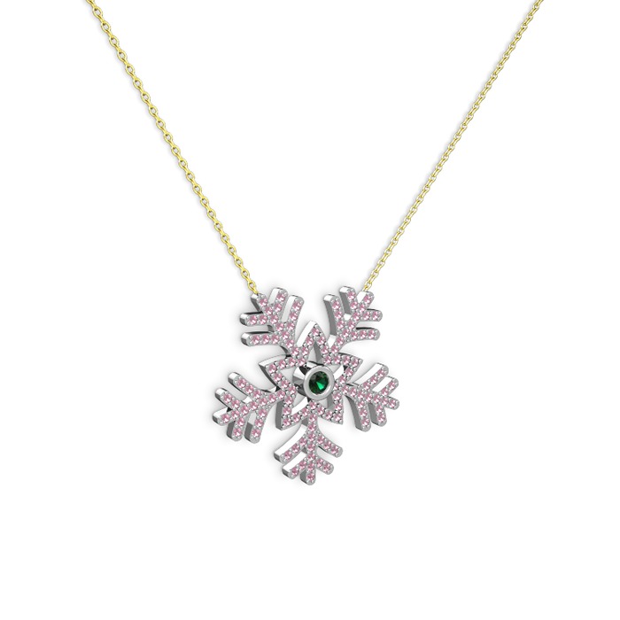 Yeşil kuvars ve pembe kuvars 8 ayar beyaz altın kolye (40 cm altın rolo zincir)