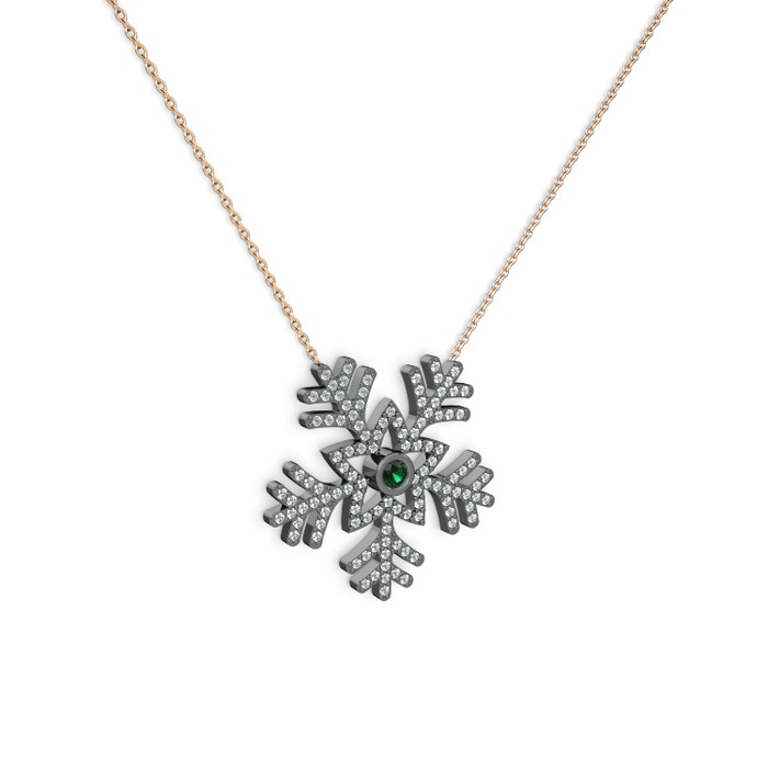 Yeşil kuvars ve pırlanta 925 ayar siyah rodyum kaplama gümüş kolye (1.012 karat, 40 cm rose altın rolo zincir)